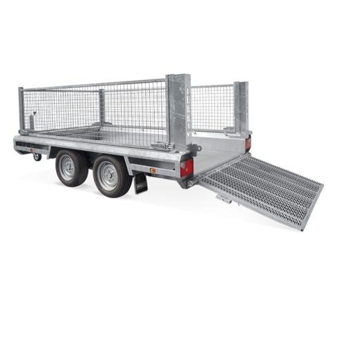 La remorque porte-engins permet aux professionnels de transporter le matriel destin aux chantiers. Disponible en double et triple essieux, elleest spcialement conue pour de trs lourdes charges telles que mini-pelle, tondeuses autoportes et mme des grues !!!!