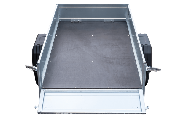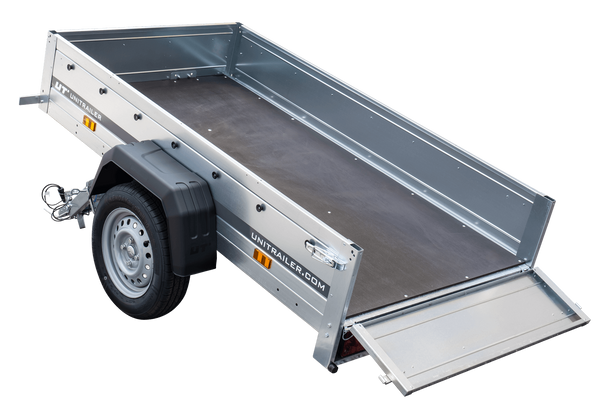 Remorque de loisirs avec la surface de transport de 200x106 cm. Garden Trailer 200 KIPP est l'un des modèles les plus populaires d'UNITRAILER qui dispose d'une suspension basée sur l'essieu simple non-freiné AL-KO ou KNOTT. Timon pliable en V (rabattable) et ridelle arrière ouvrante. Remorque en tôle d'acier galvanisé avec 2 ans de garantie. Roues 155/70 R13 avec jantes d'acier, qui amortissent des routes inégales et permettent une conduite confortable. Garde-boues très durables faits en matières plastiques résistantes à la corrosion.