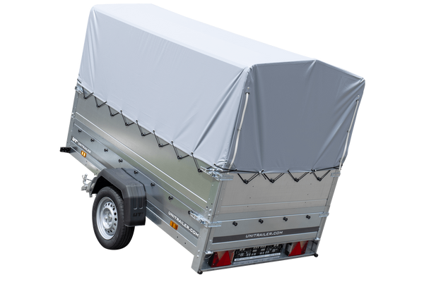 Remorque grande taille avec rehausses de ridelles et bâche haute UNITRAILER Garden Trailer 230 KIPP est le dernier produit de notre offre. Maintenant, c'est la plus grande remorque dans notre magasin avec PTAC jusqu'à 750 kg. Elle est équipée de la ridelle arrière ouvrable, ce qui rend facile le chargement et le déchargement de la cargaison. Grâce au timon pliable, elle peut être placée verticalement sur le panneau arrière. Nous faisons toutes les formalités liées à l'achat pour vous. La remorque est livrée à votre domicile avec tous les documents nécessaires pour l'immatriculer.