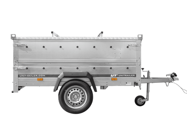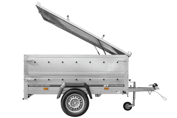 - Remorque Unitrailer Garden 201 Kipp avec timon inclinable. L'ensemble est doté de côtés BIS et d'un couvercle en aluminium. Une remorque légère parfaite pour votre maison avec une garantie de 2 ans. Livraison directement au lieu indiqué.
