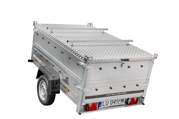 Housse ALU pour la remorque UNITRAILER GARDEN TRAILER 201 KIPP en aluminium léger et résistant. La structure est en outre renforcée sur les côtés, ce qui assure une rigidité adéquate malgré ses grandes dimensions. Le faible poids de la bâche n'est que de 50,03 kg et ne réduit pas la capacité de charge de la remorque. Un élément à utiliser sont les rails supérieurs, sur lesquels vous pouvez placer une galerie de toit ou un porte-vélos , offrant ainsi de l'espace pour le transport de divers types d'objets.