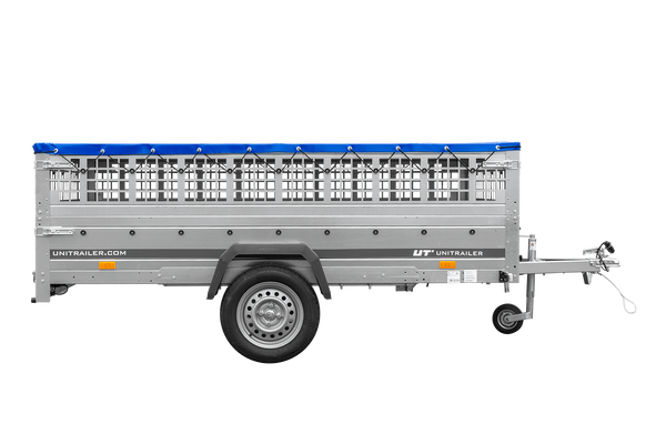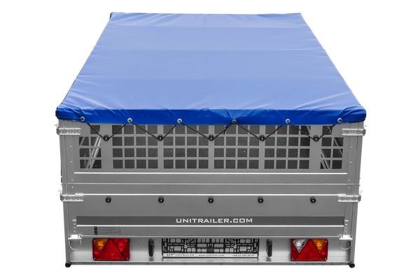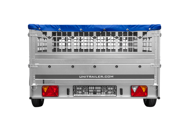- Remorque voiture UNITRAILER Garden 265 Kipp, largeur 150 cm, complète avec ridelles grillagées, cadre H-0 et bâche bleue. Une remorque grâce à laquelle vos marchandises seront protégées contre les conditions climatiques difficiles.