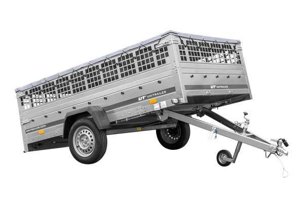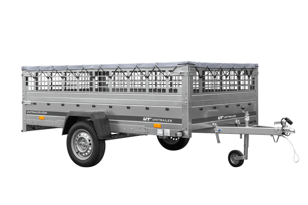- Remorque voiture UNITRAILER Garden 265 Kipp, largeur 150 cm, complète avec ridelles grillagées, cadre H-0 et bâche grise. Une remorque grâce à laquelle vos marchandises seront protégées contre les conditions climatiques difficiles.